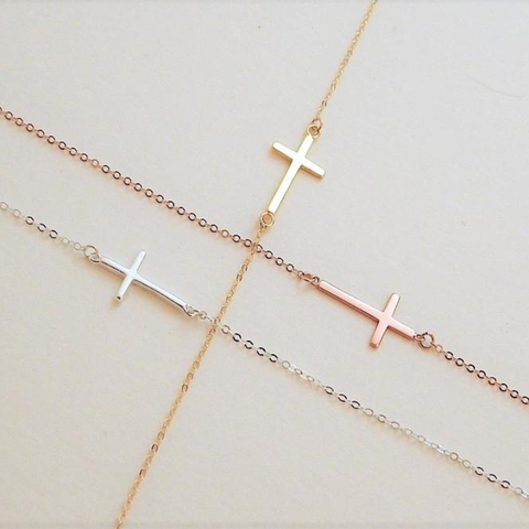 Оптовая продажа, изящное позолоченное ожерелье из стерлингового серебра 925 пробы с подвеской-крестом в виде бока для женщин
