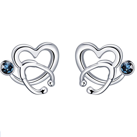 Оптовая продажа покрытые белым золотом из 925 стерлингового серебра стетоскоп в форме сердца, на день рождения, серьги-гвоздики из идеальным подарком для кормления ребенка и доктор