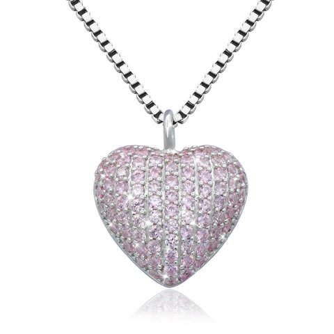 Ювелирные изделия из стерлингового серебра, кулон в форме сердца с розовым кубическим камнем для ожерелий